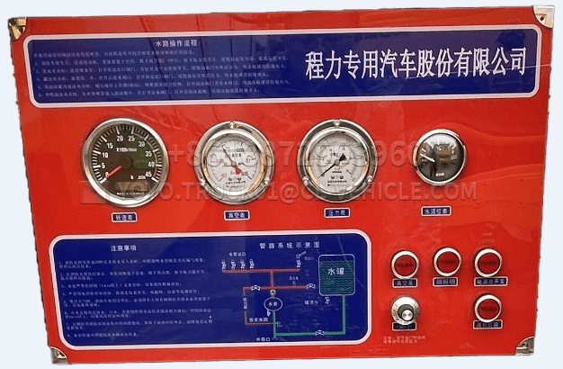 - The dashboard is located in the pump compartment at the rear of the vehicle, with a control panel and adequate lighting;