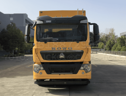 | 2 | Vehicle chassis | Howo; TX5TX-M cab; Multifunctional steering wheel; Electrically heated rearview mirrors; Main airbag + secondary mechanical seat; MC07H.35-60 engine; HW13709XSTC2 transmission (with hydraulic retarder); VPD75D front axle (disc); MCJ11BG self-adjusting arm single rear axle (drum); Speed ratio 4.63; Double-decker frame (7+4/250); Front and rear standard multi-leaf springs (11/9+8); Bosch steering gear; Standard exhaust system; Special Vehicle Cold Pack; EBS+ESC; Mid-bumper (non-metallic); Regular wheels; 295/80R22.5 tyres (mixed tread /18PR); Hand-electric integrated electric lift; 200L fuel tank; Sinotruk Intelligent Tong B version; Electromagnetic power switch; Optional rear pull hook; Optional BBM11.00R20; 300L fuel tank; Rotary PTO; Sinotruk Intelligent Pass D version. ZZ1187N501GF1 | ![]() |