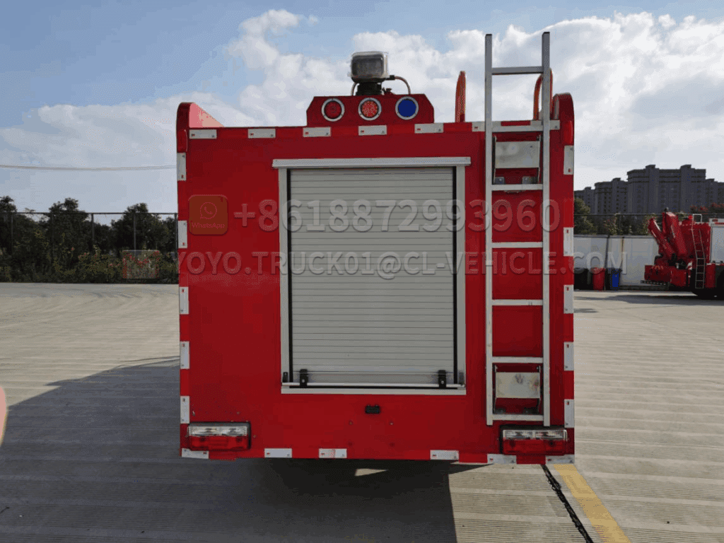 - The roof is equipped with one fire scene lighting lamp; Safety sign lights are installed on the lower sides of the vehicle, and reflective markings are affixed to the body and rear as standard.