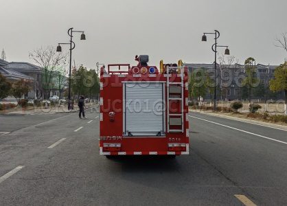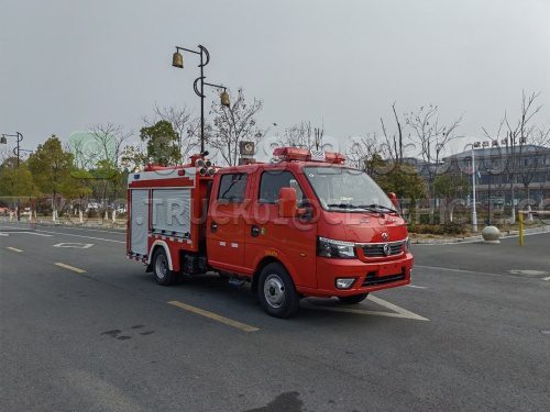 CLW5040GXFSG10/DF water tank fire truck, modified from Dongfeng Xiaoduolika, model EQ1040D16DC Type II chassis. The vehicle consists of two major parts: the cab and the body. The cab is an original double-row design that can accommodate 2+3 people. The vehicle has an exposed tank structure. The front part of the body is the equipment box, the middle part is the liquid tank, and the rear part is the pump room. The liquid tank body is made of high-quality carbon steel and is coated with epoxy primer and epoxy asphalt paint inside, with a load capacity of 850kg. Equipped with a CB10/20 low-pressure fire pump with a rated flow of 20L/S and a PS8/20W vehicle-mounted fire cannon on the roof. The most notable feature of this vehicle is its large fluid capacity, good maneuverability and easy maintenance. It can be widely used in fire brigades, factories, mines, enterprises, communities, docks and other places to fight fires.
