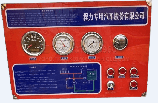 - The dashboard is located in the pump compartment at the rear of the vehicle, with a control panel and adequate lighting;