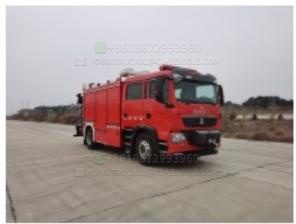 CLW5140TXFJY130/AXF type emergency rescue fire truck, modified from type ZZ5207TXFV471GF5 type II chassis of Jinan Truck Co., Ltd. of Sinotruk Group. The vehicle consists of two major parts: the cab and the body. The cab is designed as a double row and can accommodate 2+4 people. The vehicle is comfortable and light to ride. The vehicle is equipped with a 24V electric towing winch, which can pull about 10 tons of cargo; The equipment box is equipped with high-power generator sets and can be built with various frames and pallets for emergency rescue equipment as per customer requirements. The roof is equipped with a lifting lighting system, which can lift up to 8 meters off the ground and is equipped with 4 1000W lighting lamps. The rear is equipped with a hydraulic crane that can lift up to 6300kg of goods.