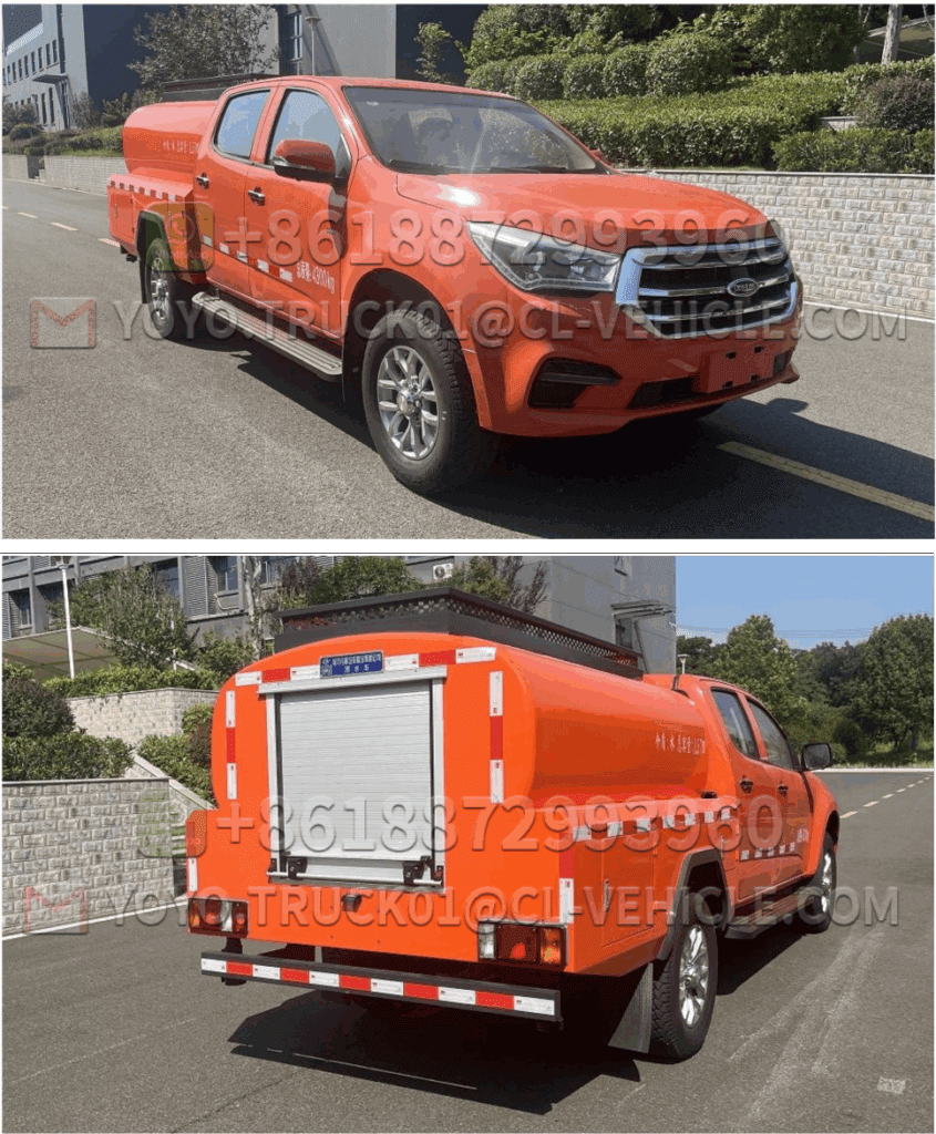 The exterior of the sprinkler truck is painted orange-red and can be customized according to customer requirements.