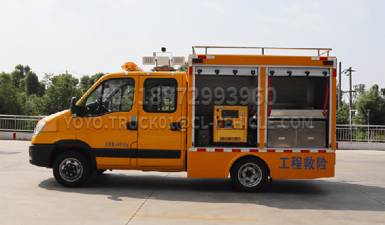 The vehicle is equipped with a power box with leakage protection, with 1-2 aviation plugs for external power supply, and 380V and 220V power sockets below, which can supply power to small equipment such as welders, cutters, mobile phones, flashlights, etc. The distribution box is equipped with various types of circuit breakers for external power supply | ![]() |