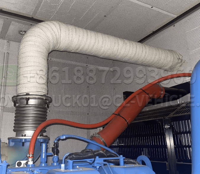 | 3 | Compartment intake and exhaust system | The air intake and exhaust system is designed to provide clean, smooth and even air to the diesel generator set. The rear side air intake is equipped with electric/manual closed shutters, stainless steel wire mesh (with rat-proof function), sound absorption system, and the effective air intake area of the generator set can fully meet the normal operation requirements of the generator set. When the unit is in operation, the manual shutters are opened to ensure the air intake during the operation of the unit. When the unit is stopped, the manual shutters are closed to ensure the airtightness of the compartment and protect the equipment inside from corrosion during long parking periods of the vehicle. The effective intake area of the compartment is about 1.2 to 1.5 times the heat dissipation area of the water tank, which meets the normal operation requirements of the generator set. | ![]() |