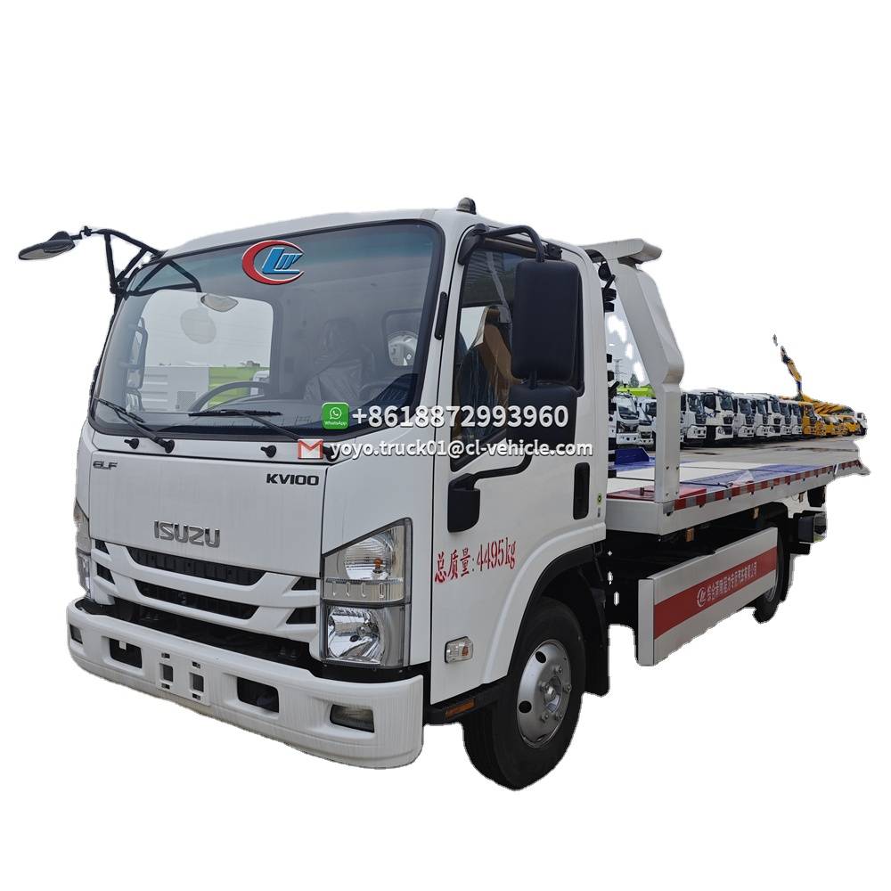High Quality Japanese Isuzu 4 Ton Wrecker Hydraulic Flatbed Truck 4*2 LHD Small Road Rescue Vehicle for Sale